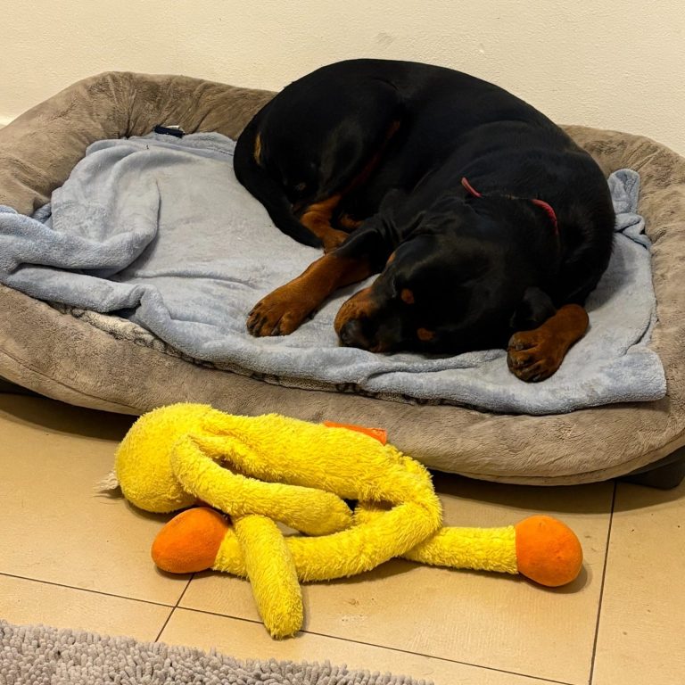 Während der Urlaubsbetreuung ist es uns wichtig, dass die Hunde möglichst viel Vertrautes um sich haben. Das eigene Körbchen oder eine Decke von zu Hause helfen vielen Hunden, sich schneller zu entspannen und anzukommen – und natürlich darf auch das Lieblingskuscheltier mitgebracht werden.