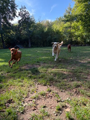 Die Anzahl der betreuten Hunde richtet sich dabei stets nach dem jeweiligen Tag und der passenden Gruppenzusammenstellung. Wir teilen die Hunde bewusst in kleinere Gruppen auf und achten bei der Zusammenstellung auf Größe, Alter, soziales Verhalten und Charakter. So entstehen stimmige Gruppen, in denen sich die Hunde sicher fühlen und zur Ruhe kommen können.