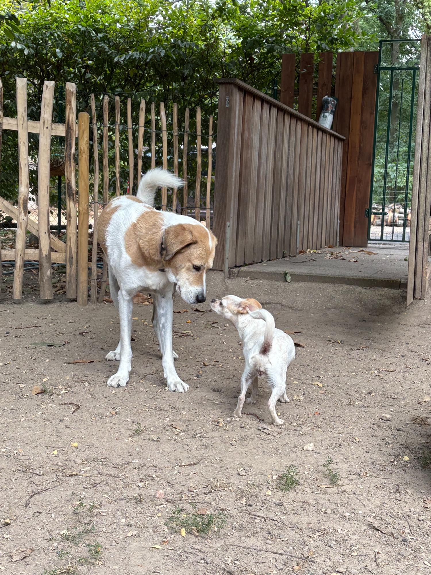 Der Sozialkontakt der Hunde wird bei uns aktiv begleitet und gemanagt. Ziel ist ein Sozialkontakt mit Mehrwert, bei dem die Hunde voneinander lernen und positive Erfahrungen im Miteinander sammeln können. Dabei achten wir darauf, dass es nicht zu Überforderung oder ungünstigen Dynamiken kommt. Unsichere Hunde sollen hier Sicherheit gewinnen – nicht weiter verunsichert werden.